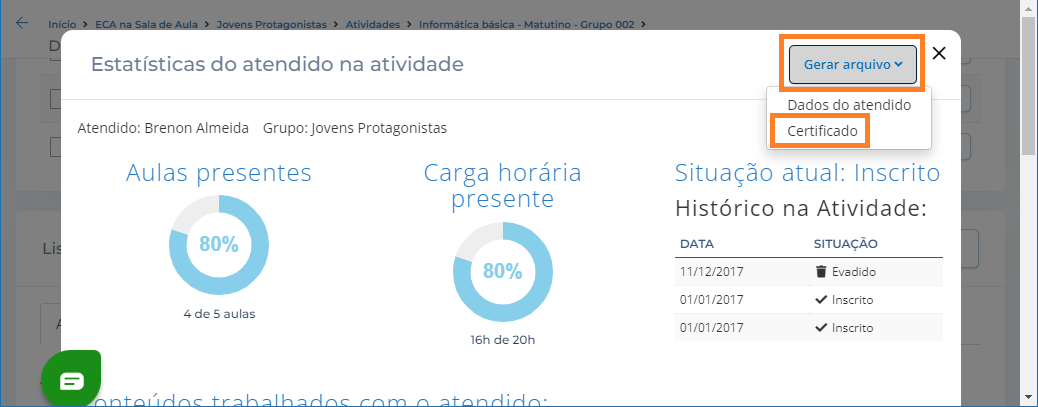 Para ver como gerar o certificado em massa dos atendidos, clique aqui.