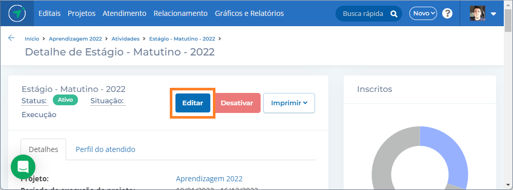 Para configurar o certificado, clique em: Atendimento > Atividades > Listagem