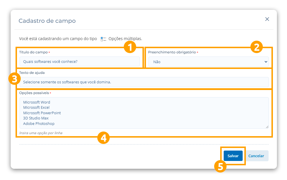 4 - Em Opções possíveis, digite: Uma opção por linha.
