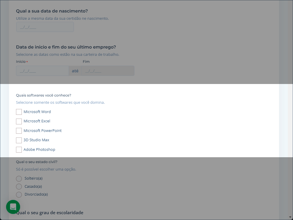 Este campo é utilizado quando á necessidade de ter várias opções e poder escolher quantas forem necessárias.