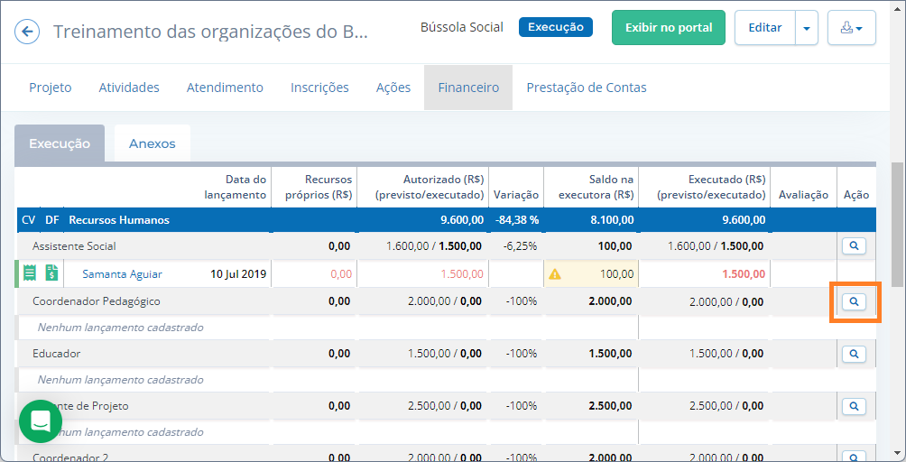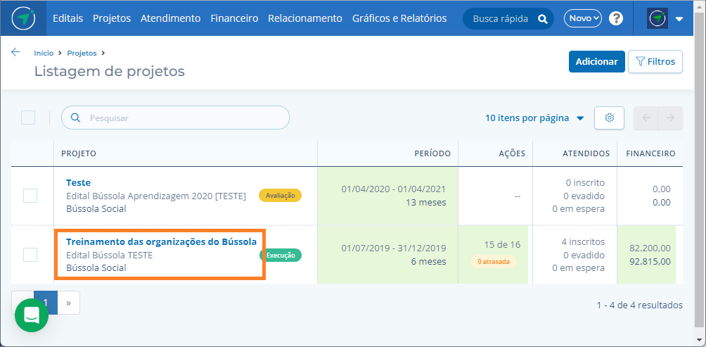 Para adicionar um lançamento simples, acesse: Projetos > Programas e Projetos > Listagem de Projetos