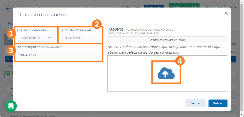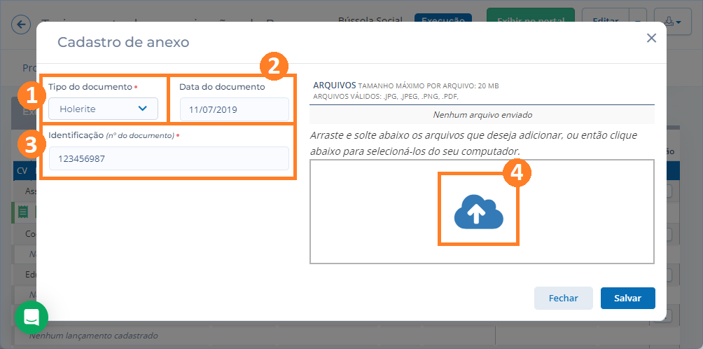 1 - Em Tipo do documento, selecione: O documento que você vai anexar