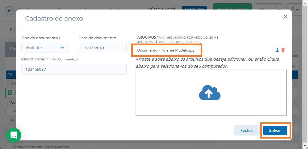 Para adicionar o segundo documento obrigatório, clique em: + Adicionar