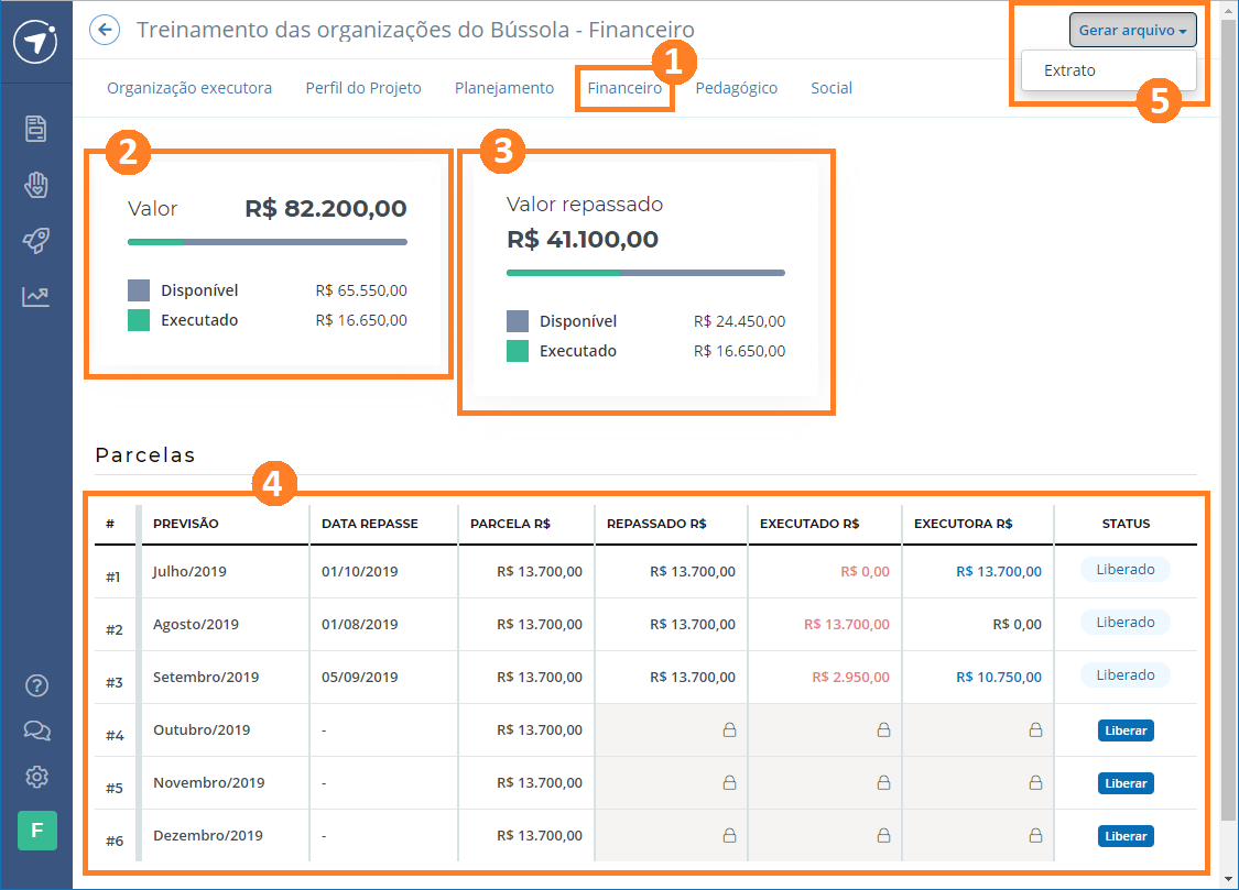 5 - Clicando em: Gerar arquivo > Extrato, é possível imprimir o extrato que a organização anexou.