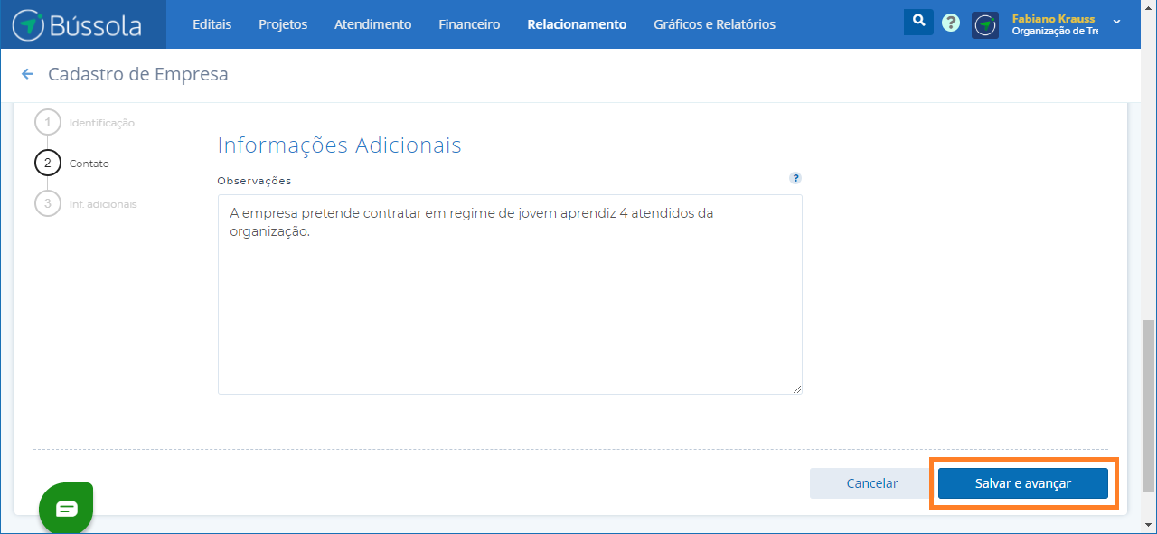 3 - Preencha as informações de contato com a empresa e da pessoa de contato dentro da empresa