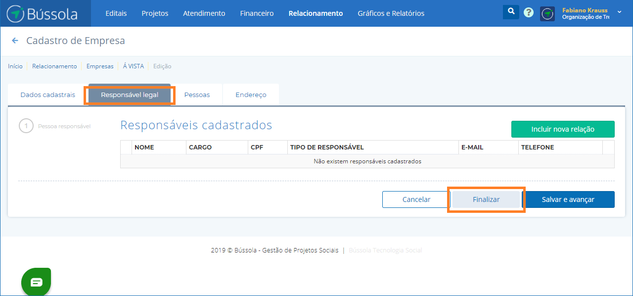 Para ver como cadastrar o Responsável legal da empresa, clique aqui.
