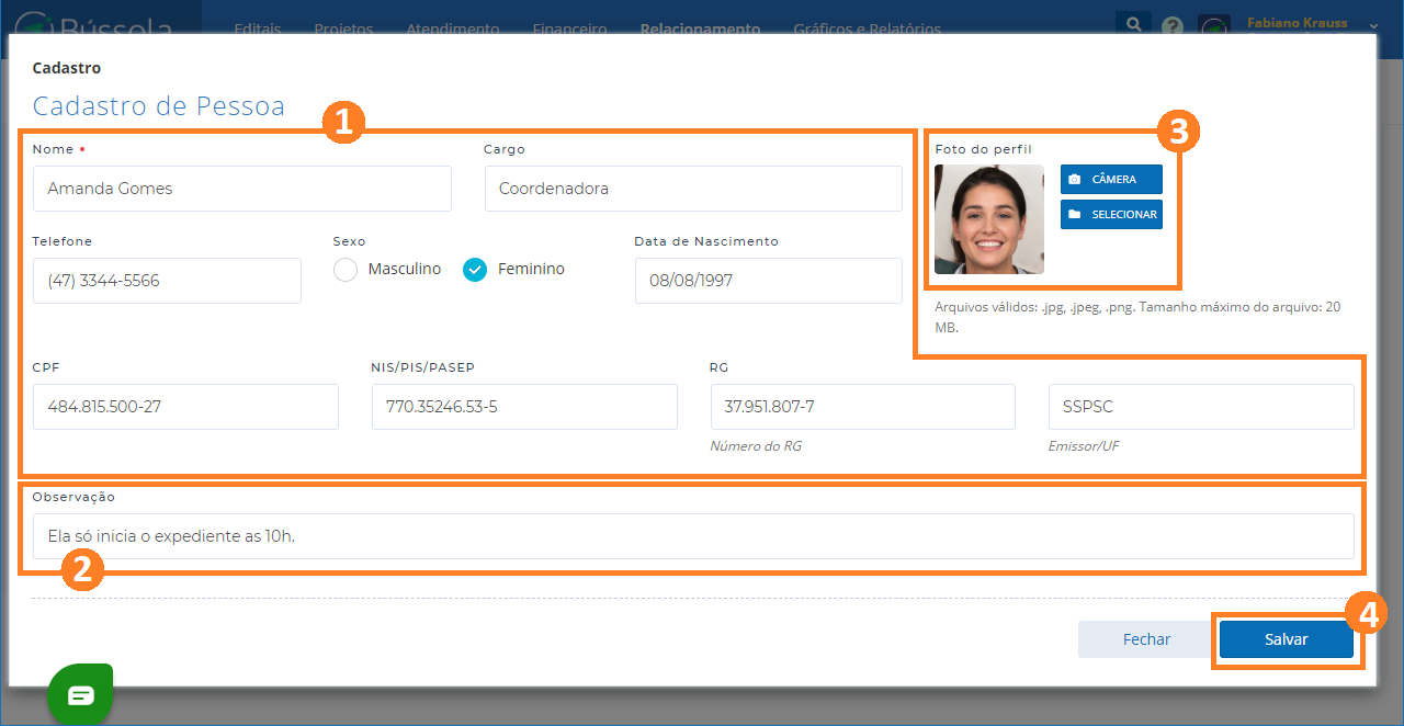 Você pode cadastrar todas as pessoas da empresa ou somente as pessoas que terão o contato com o atendido.